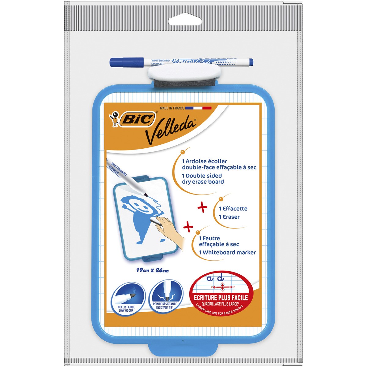 Pizarra blanca Velleda pack con marcador y borrador. Tamaño 19x26cm BIC