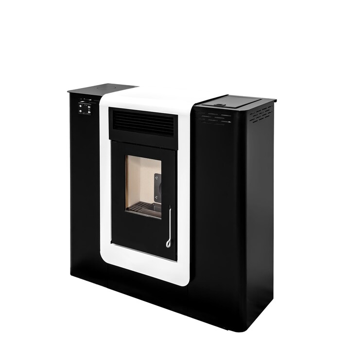 La estufa de pellets canalizable Eider es un dispositivo de calefacción eficiente, diseñado para su uso en espacios reducidos como pasillos. Funciona con pellets como combustible y está equipada con una tolva hermética y una cámara de combustión revestida de vermiculita, lo que optimiza su rendimiento. Este modelo permite la regulación automática de la temperatura y es programable, además de incluir un mando a distancia para mayor comodidad. Su potencia varía entre 3,04 y 11,5 kW, con un rendimiento que oscila entre el 87% y el 90%. Dispone de un depósito con capacidad para 13 kg de pellets, lo que le proporciona una autonomía de entre 5,9 y 14,4 horas, dependiendo del consumo, que puede variar entre 0,9 y 2,2 kg/h. Es capaz de calentar una superficie de hasta 86,4 m² y un volumen de hasta 216 m³. La salida de humos es trasera con un diámetro de 8 cm. Para asegurar su correcto funcionamiento y la validez de la garantía, se recomienda que la instalación y cualquier intervención sean realizadas por un servicio autorizado del fabricante.