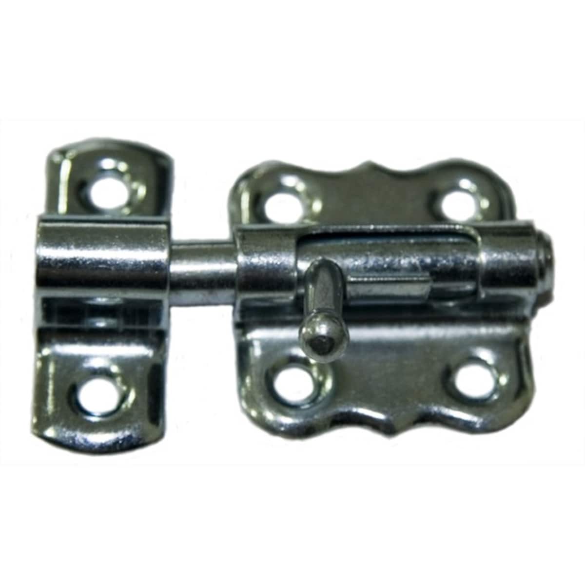 Cerrojillo clásico tipo pasador para instalar en puertas, fabricado en acero zincado, con formas onduladas.