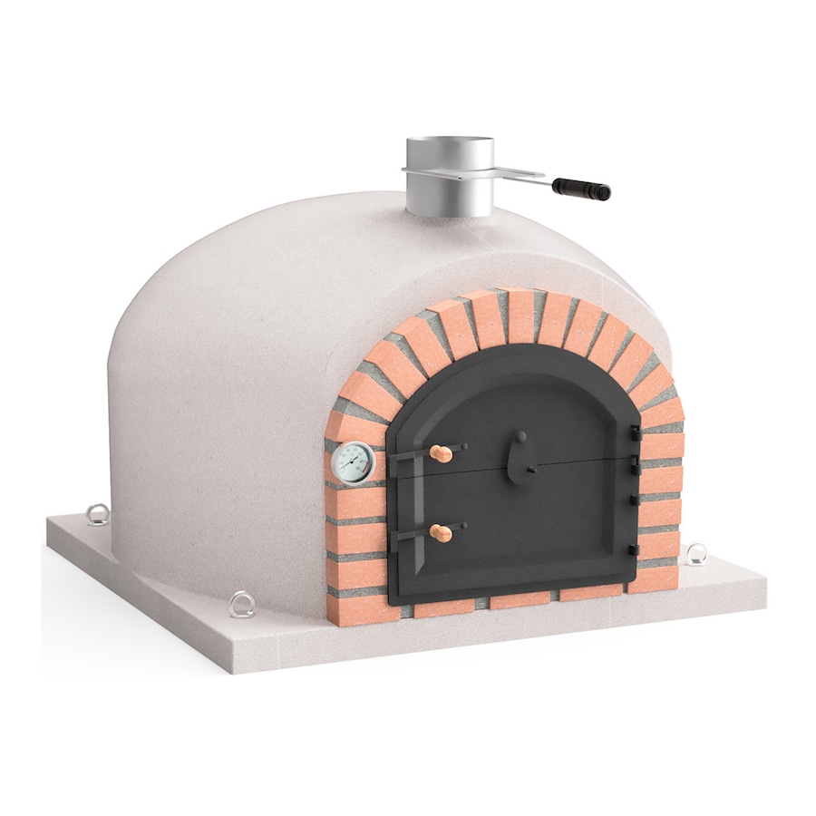 Incluye pirómetro, salida de humos de accionamiento manual en acero inoxidable (150 mm) y puerta en acero pintado de apertura doble.