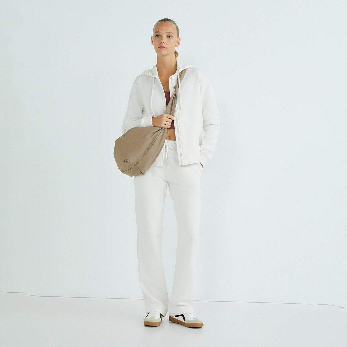 Sudadera terry con cremallera entera y capucha de mujer