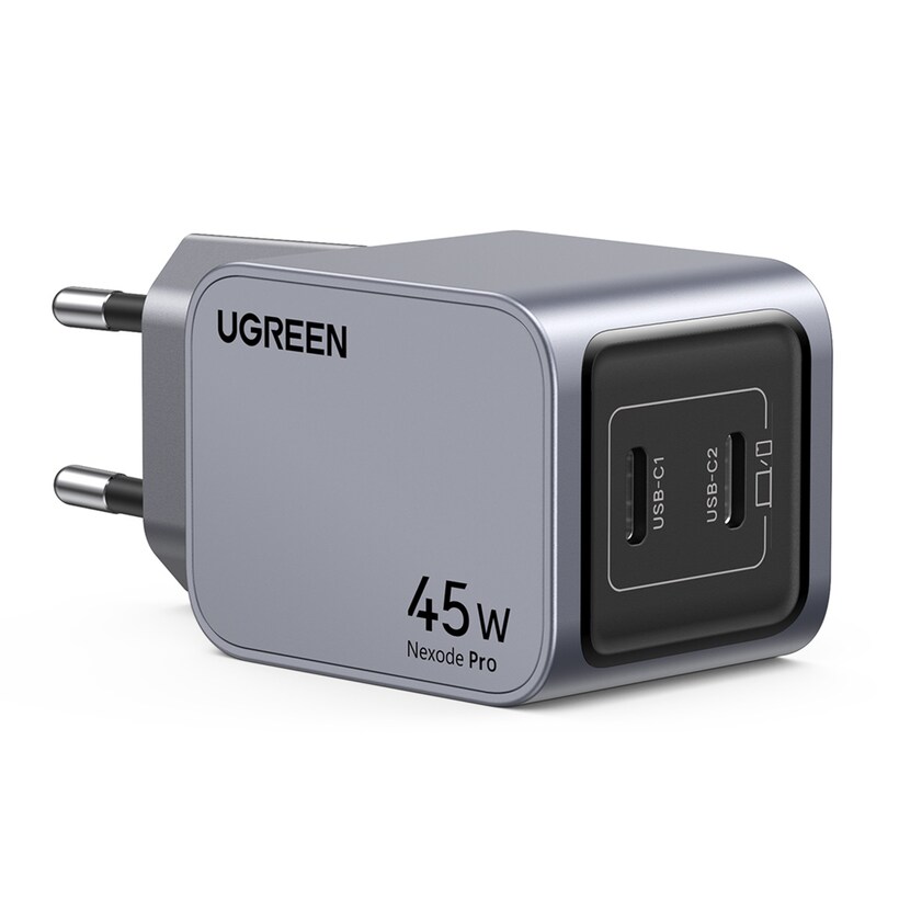 UGREENCargador Ugreen Nexode Robot 65W GaN con 3 puertos: 2 USB-C y 1 USB-A con carga rápida, negroAñadir