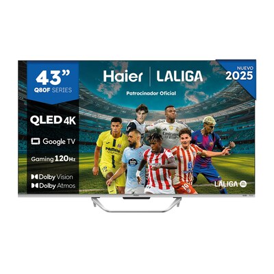 HaierTV QLED 108 cm (43") Haier H43Q80FUX UHD 4K, Peana central, Smart Google TV, HDR10+, Dolby Atmos & Vision, Gaming 120HzVer detalle