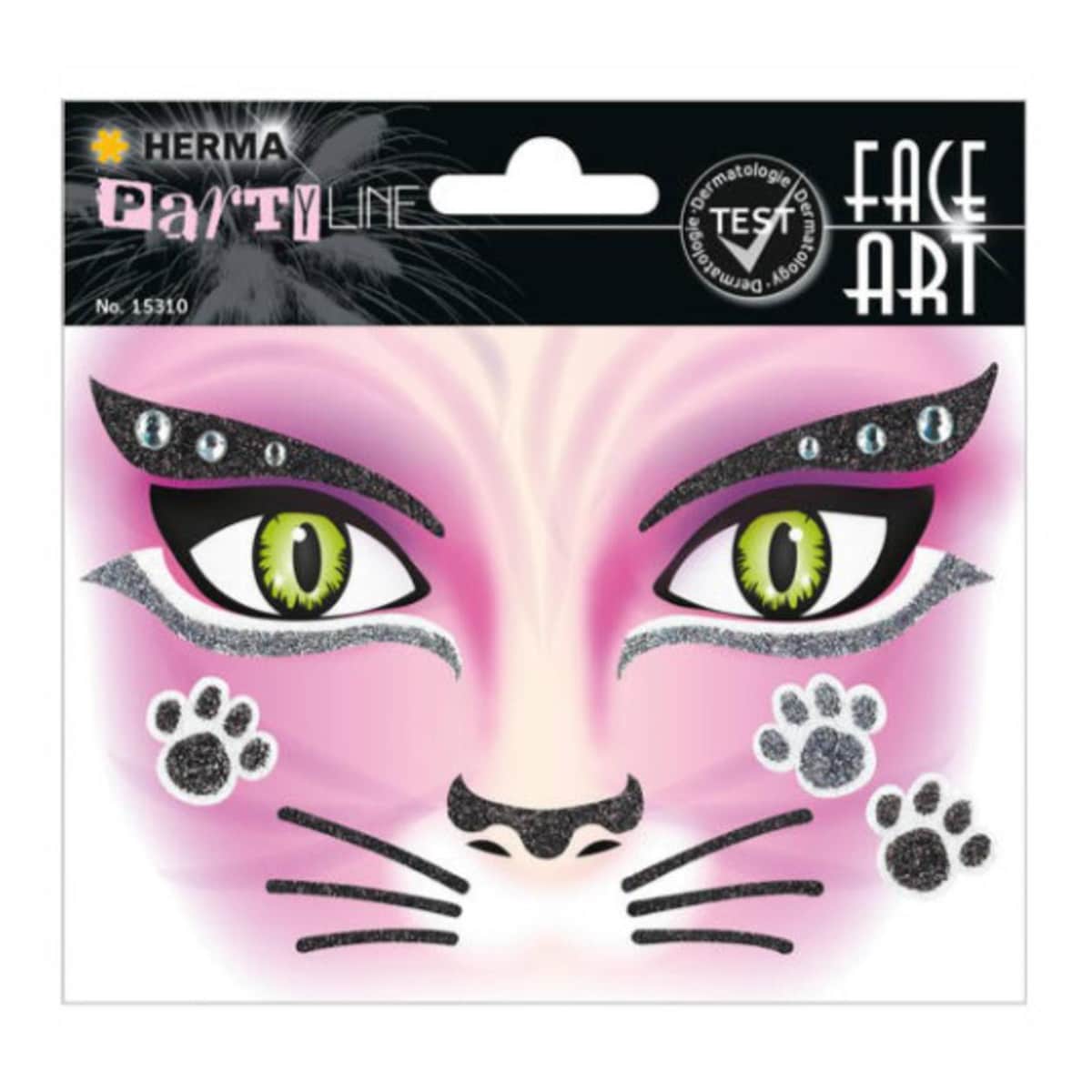 Pegatinas face art cat glittery foil Herma rosa