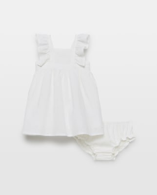 Vestido bebé niña de lino con vainica liso