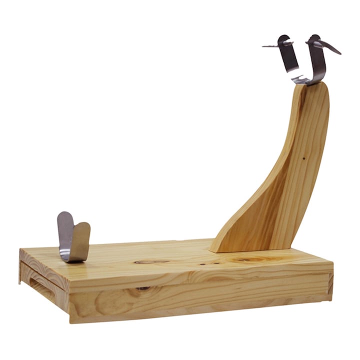 Jamonero fabricado en madera de pino y pinchos en acero inoxidable.