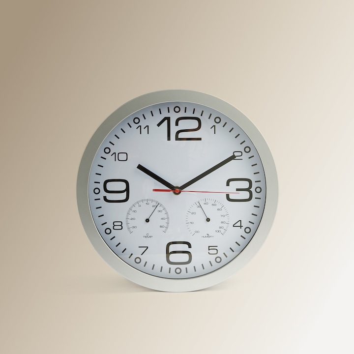 Con estética moderna y llena de practicidad, este reloj de pared Budapest te muestra la hora, la temperatura y la humedad de un solo vistazo, gracias al termómetro e higrómetro incorporados.
