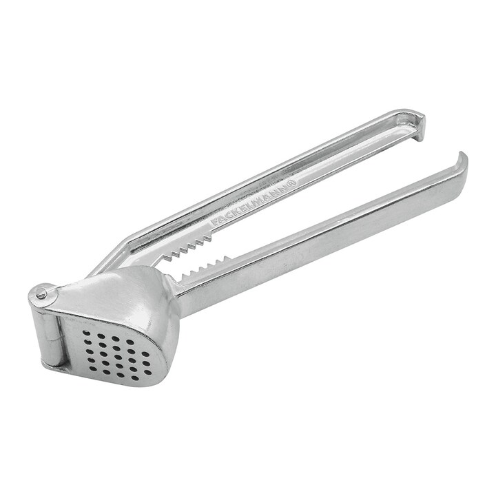 Práctico prensa ajos de hecho en aluminio que, en un rápido y sencillo gesto, convierte los dientes de ajo en puré. Es perfecto para añadir ajo a salsas, vinagretas, ya que saca todo su jugo y sabor.