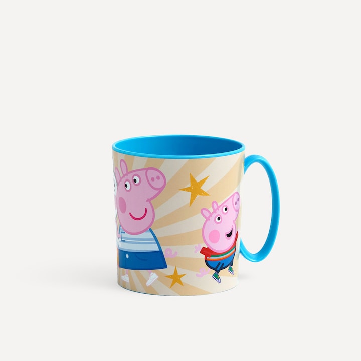 La popular cerdita Peppa Pig va a acompañar a los más pequeños de la casa con esta divertida taza que les encantará para tomar la leche con cacao cada mañana. Está realizada en plástico polipropileno por lo que es resistente y ligera, ¡no se romperá! y podrás meterla en el microondas hasta 2 minutos si necesitas calentar leche.