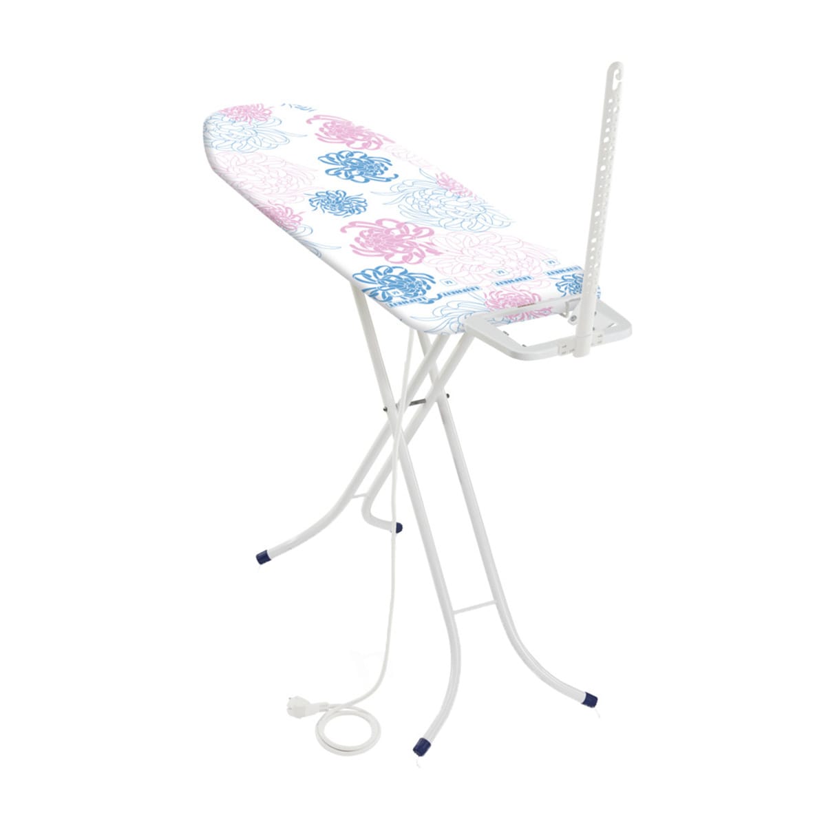Tabla de planchar regulable en altura (de 69 a 88 cm) con superficie de planchado de 120 x 38 cm, toma de corriente y antena pasacables. Cuenta con una superficie de planchado metálica permeable al vapor, con mecanismo de bloqueo.