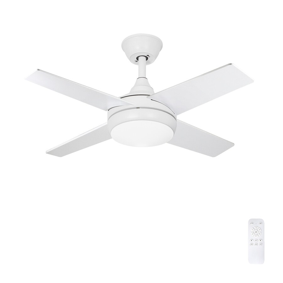 Ventilador de techo, con 4 aspas y luz LED de 18 W, fabricado en acero, plástico y madera MDF lacada en blanco. Con mando a distancia (incluido). Pilas para el mando a distancia incluidas (2x1,5V AAA).