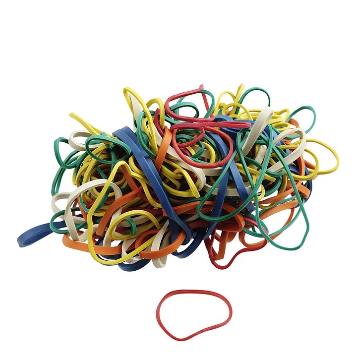 Set de 150 gomas elásticas de diferentes tamaños y colores perfectas para cerrar bolsas de galletas, caramelos, café, etc.