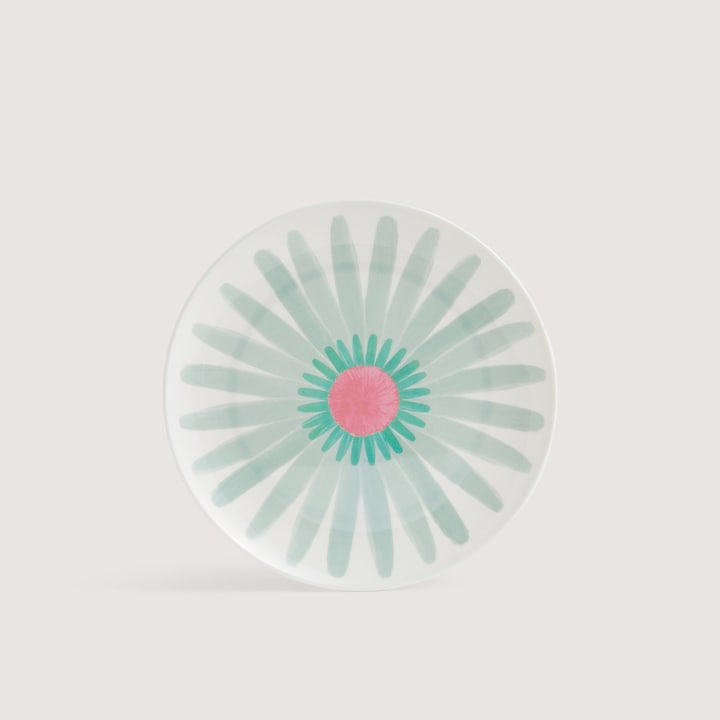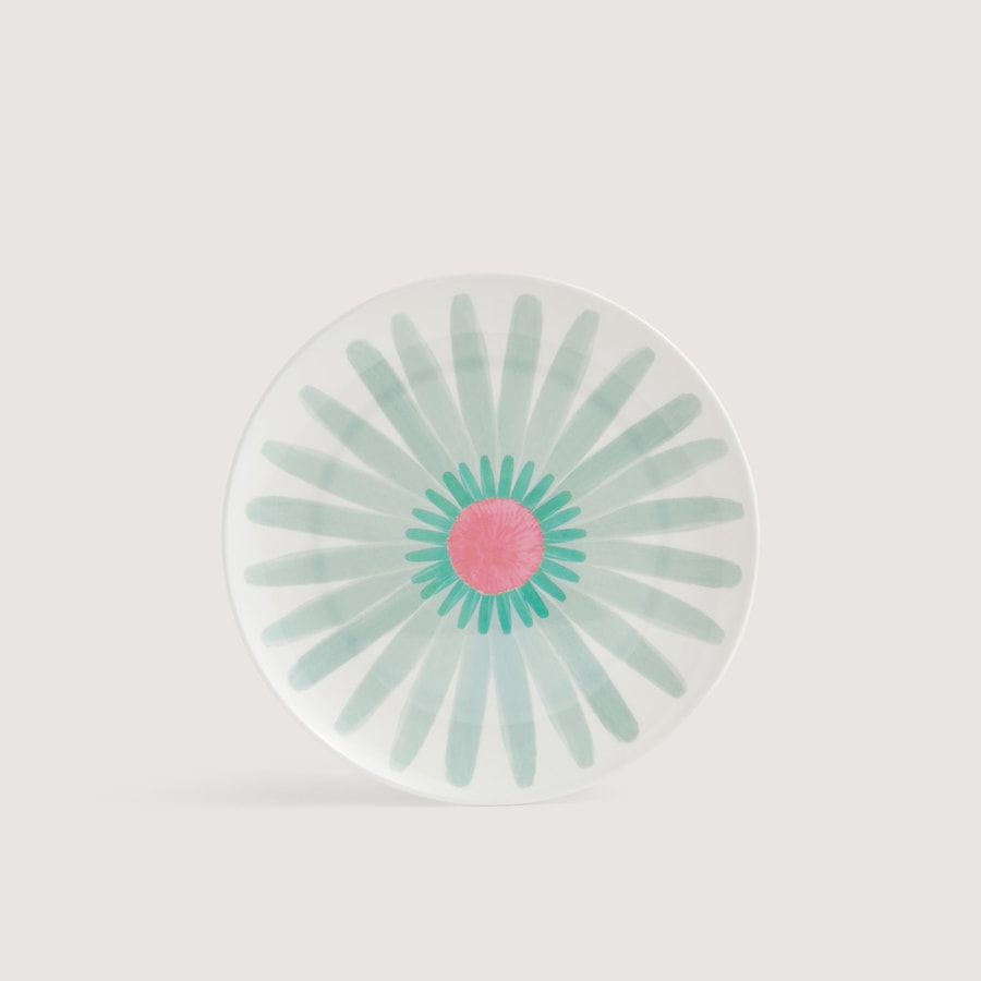 Plato de postre de la serie Flower Market que destaca por su colorido dibujo de una flor. Está realizado en melamina, un material versátil y de alta resistencia, perfecto para usar en piscinas, terrazas y espacios al aire libre. Además, es apto para su uso en el lavavajillas.