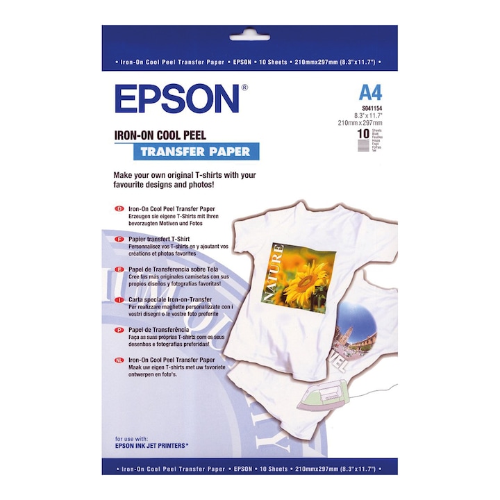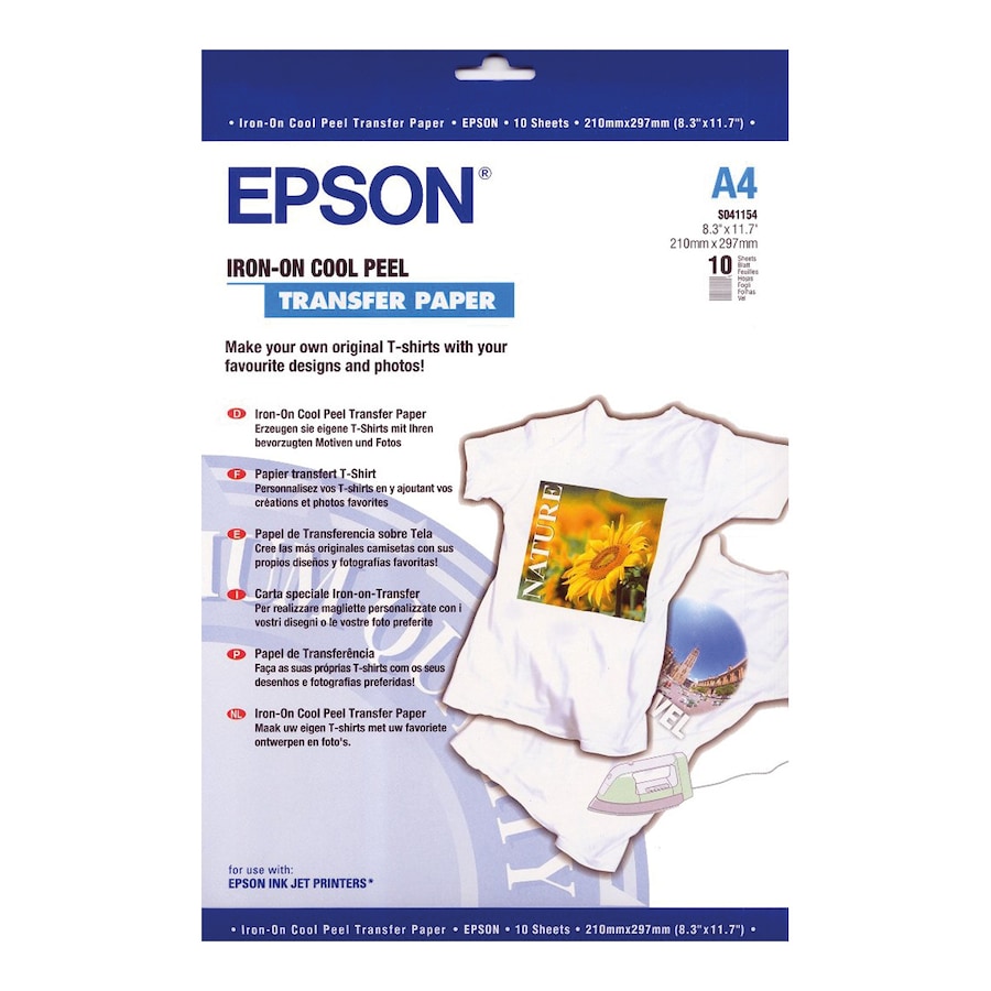 Papel de transferencia térmica Epson Iron-On, A4, 124 g/m2, 10 hojas