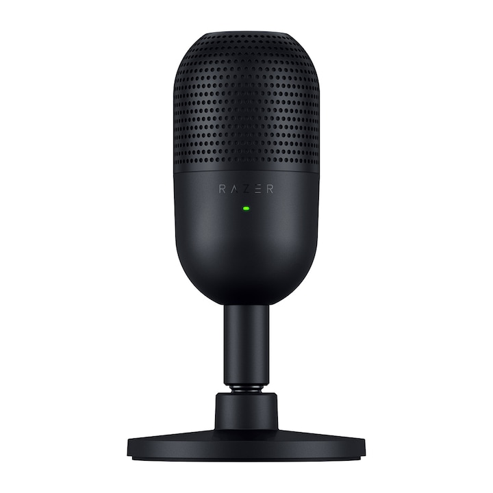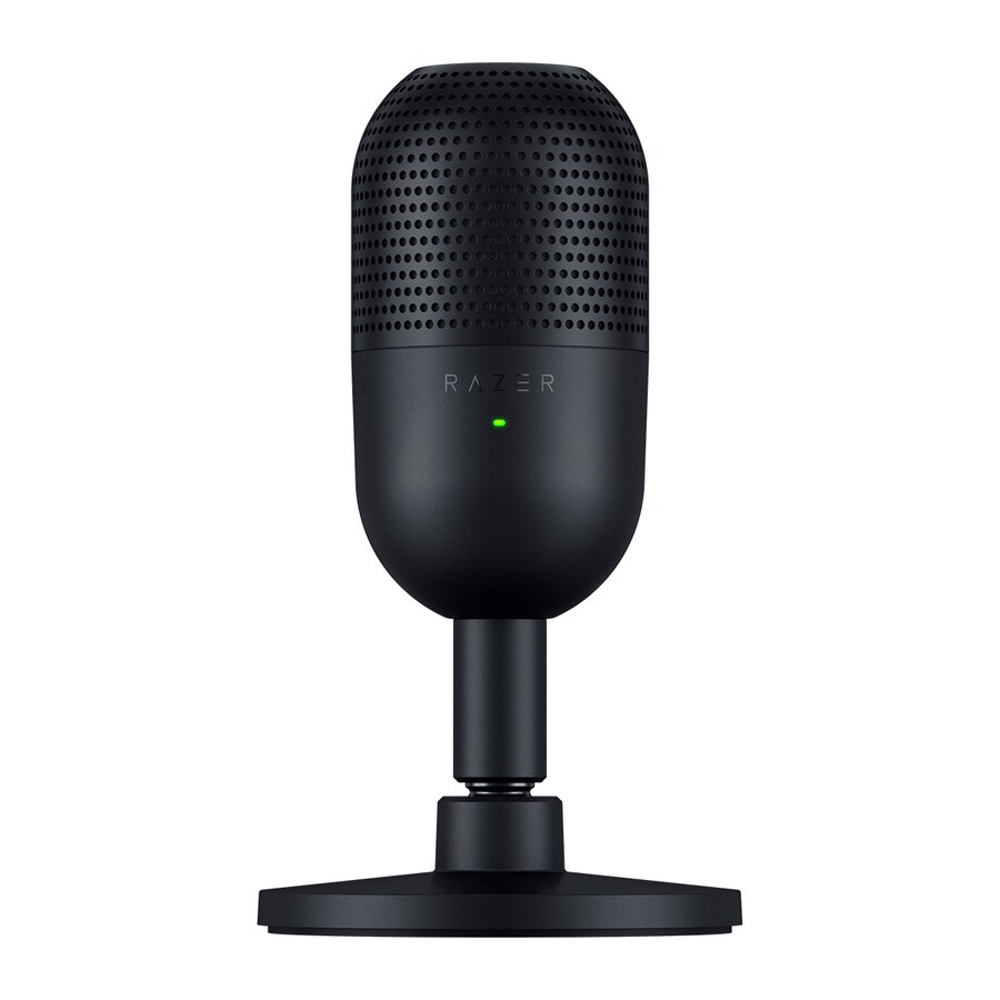 El micrófono gaming Razer Seiren V3 Mini es un dispositivo ultracompacto diseñado para la captura de voz de alta calidad. Este micrófono de condensador presenta un patrón de captación supercardioide, lo que permite un enfoque preciso en la voz y reduce el ruido ambiental. La cápsula de 14 mm ofrece una sensibilidad de -36 dB y una frecuencia de respuesta que abarca desde 20 Hz hasta 20 kHz, asegurando una reproducción clara y detallada de la voz. Incluye un sensor de pulsación para silenciar, acompañado de un indicador LED. Cuenta con un amortecedor de vibraciones integrado que minimiza los ruidos causados por golpes accidentales. Su diseño plug and play permite una conexión rápida y sencilla mediante un cable USB tipo A a tipo C, sin necesidad de instalar software adicional. Es compatible con plataformas como Discord, OBS Studio y XSplit, y se puede personalizar a través de Razer Synapse, donde se pueden ajustar parámetros como la iluminación y las tasas de bits. La cápsula del micrófono es desmontable del pedestal y puede ser montada en un brazo boom.