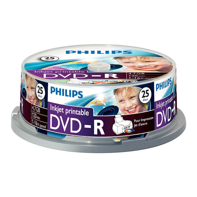 Tarrina 25 DVD-R imprimibles Philips 4,7 GB