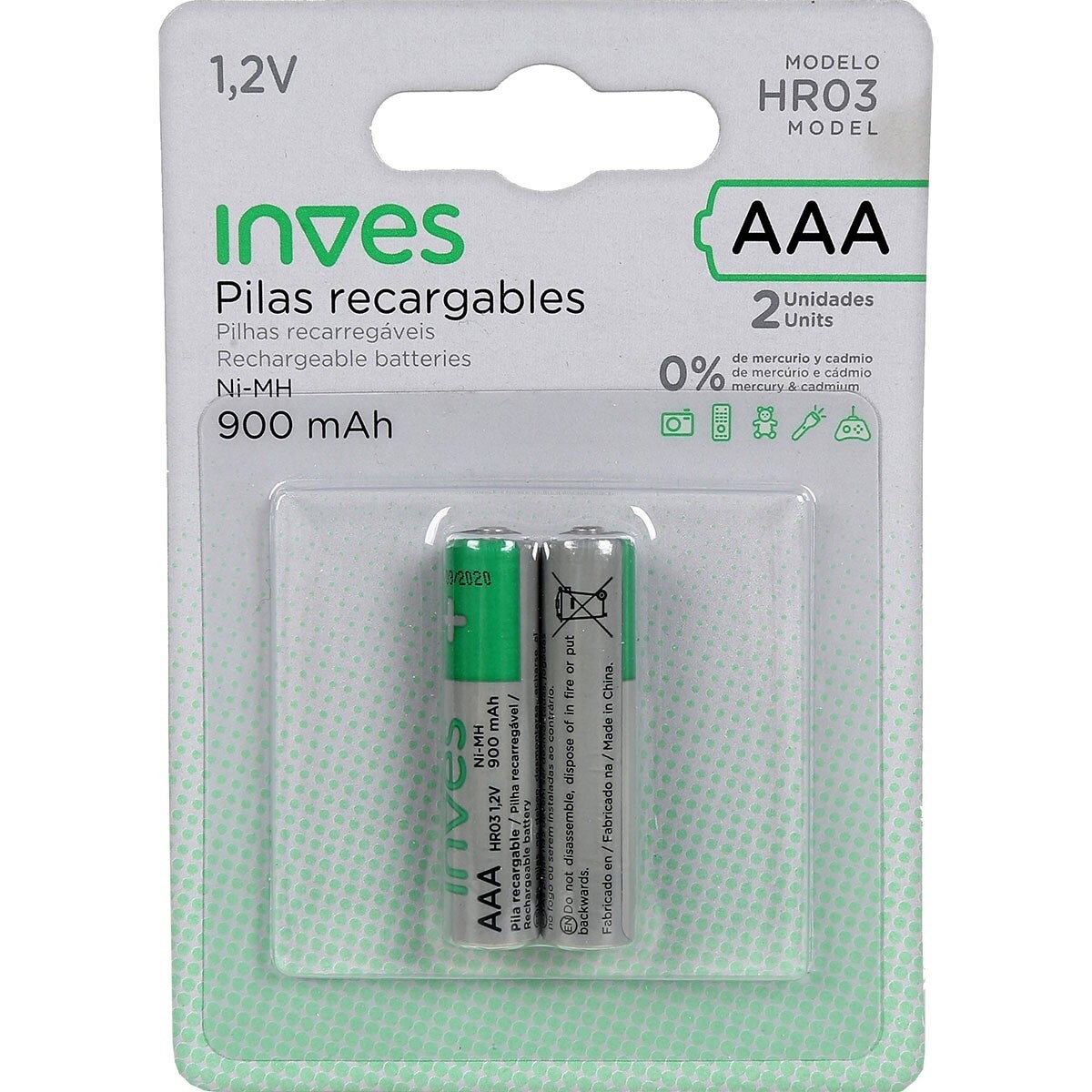 Pila recargable HR03 AAA 1,2V 900 mAh (x2)