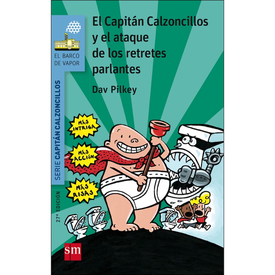Una nueva entrega del superhéroe más original de El Barco de Vapor. Esta vez Jorge y Berto crean sin querer todo un ejército de retretes parlantes, que tratan de conquistar el mundo. ¿Quién será capaz de salvar a la escuela de las enloquecidas tazas carnívoras? Una historia que entretiene y, al mismo tiempo, estimula la creatividad y la imaginación. Si te gustan los chistes, los cómics y los fliporamas, no puedes perderte esta historia.