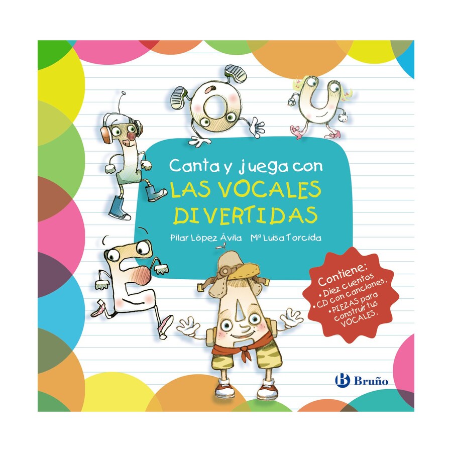 <p>Este volumen incluye <b>10 cuentos protagonizados por las vocales divertidas</b> creadas por Pilar López Ávila y M.ª Luisa Torcida, todos en letras mayúsculas y en versiones adaptadas para los más pequeños, con el objetivo de familiarizarlos con la representación gráfica y el sonido de cada vocal a través de <b>sencillas historias. </b></p><p>Simpáticas canciones acompañan a los textos (en el CD adjunto, alojadas en una dirección web y con accesos para tablet o móvil inteligente), y también se incluyen piezas troqueladas para montar las 5 vocales, lo que fomentará la motivación y el afianzamiento del aprendizaje de las primeras letras de la forma más entretenida y participativa para los niños.</p>