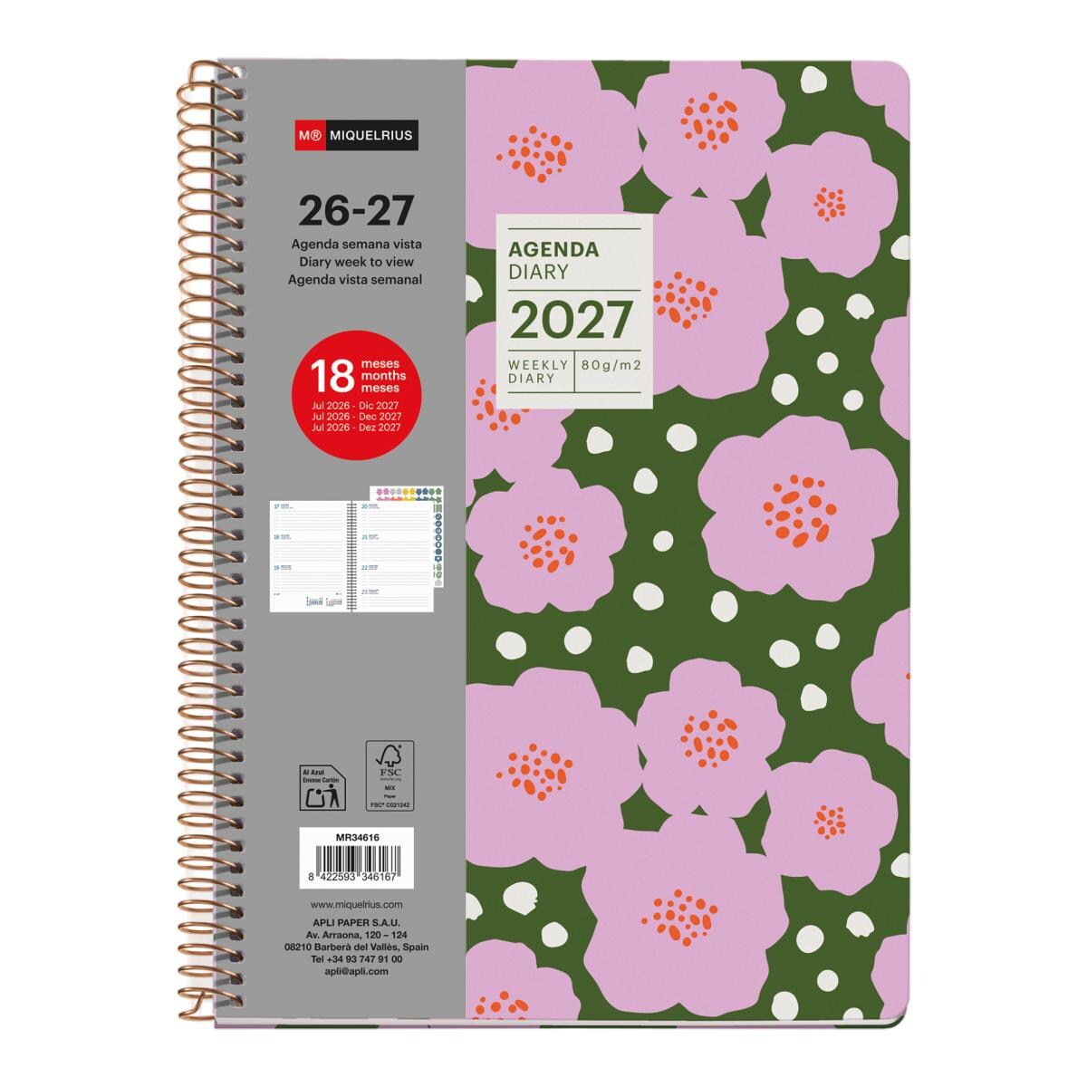 NuevoMiquelriusAgenda Escolar 18 Meses Back To Basics 14X19 Semana Vista Petroleo 2026-27 MiquelriusAñadir