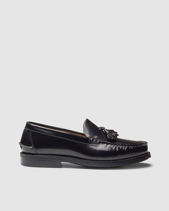 Mocasín castellano de color negro con borlas en pala.