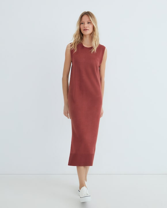 Vestido de punto midi sin mangas.