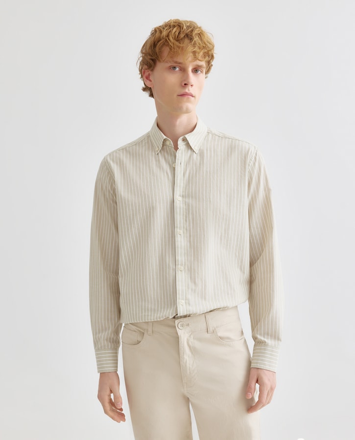 Camisa sport chambray con rayas.