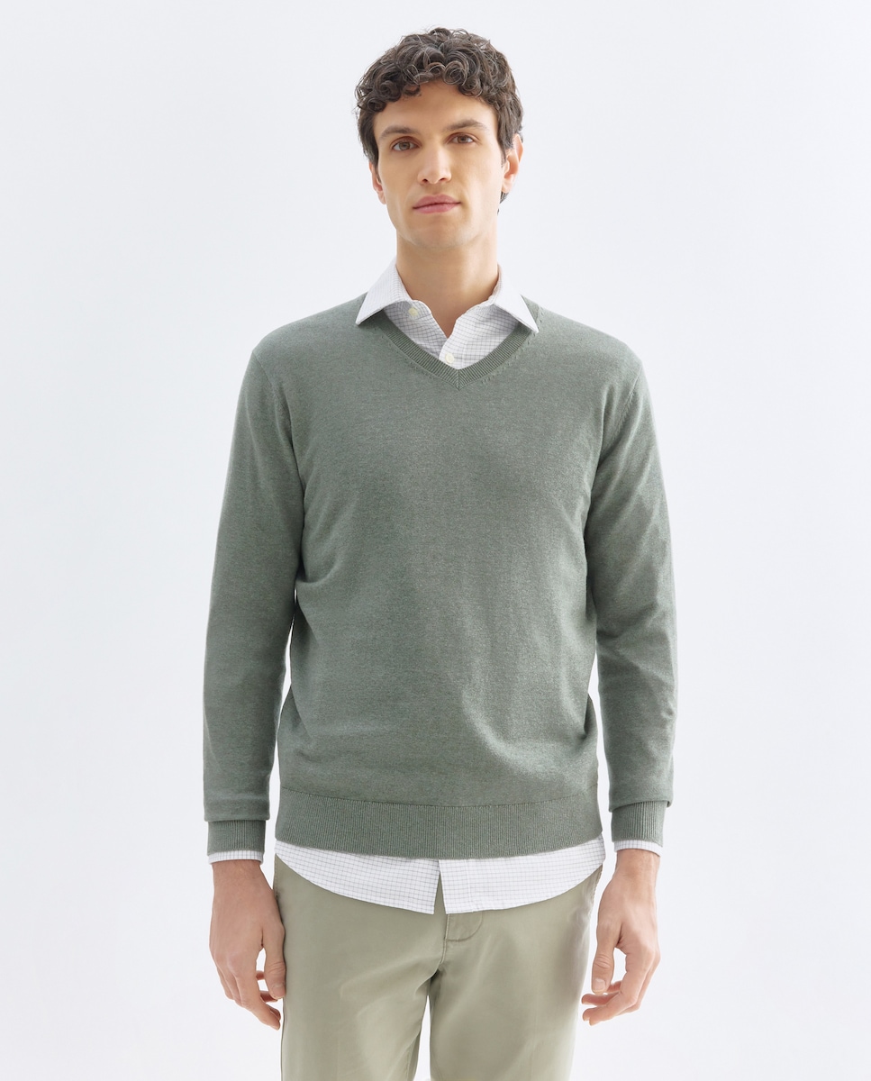 Jersey de hombre cuello pico liso algodón 100%