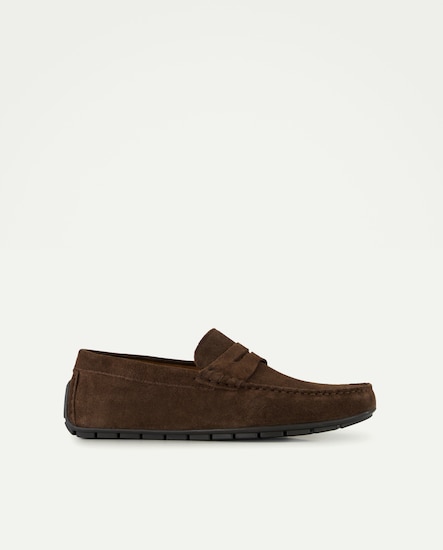 Mocasín liso de serraje con piso de goma