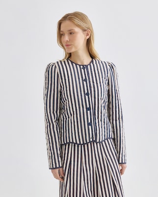 Chaqueta de mujer de rayas con manga abullonada total look