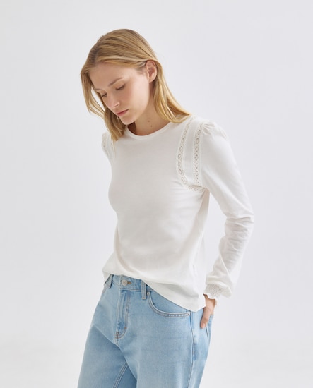Camiseta de mujer cuello caja canesú bordado