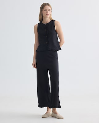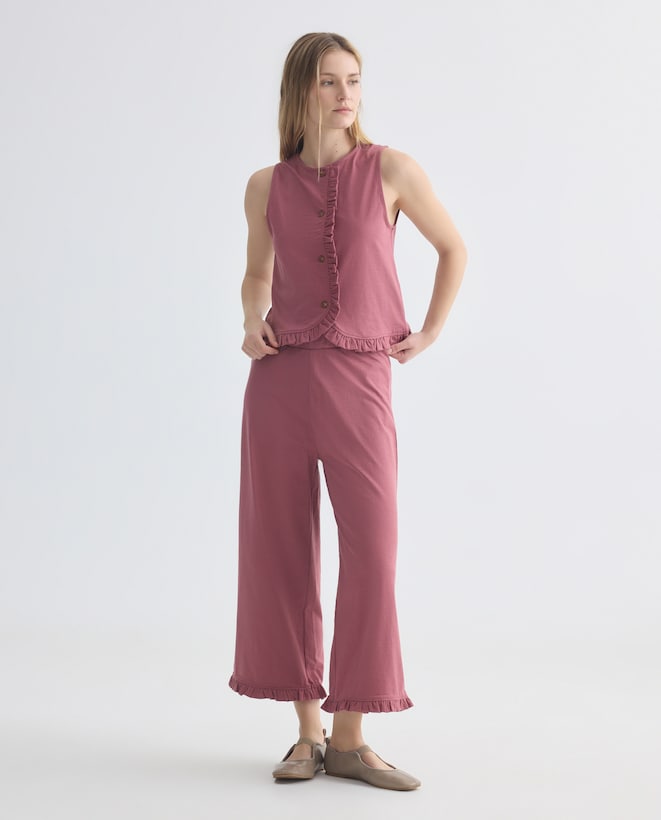 Pantalón ancho mujer con volantes en el bajo