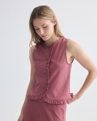 Top sin mangas de mujer con volantes