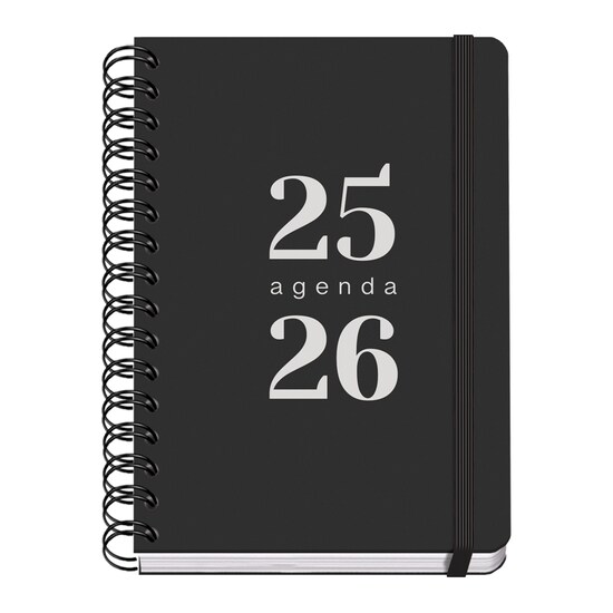 Agenda escolar A5 espiral semana vista colour vibes Dohe negra bilingüe.