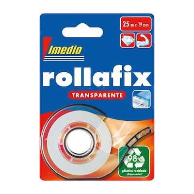 Cinta adhesiva transparente rollafix + dispensador 25 cm Imedio