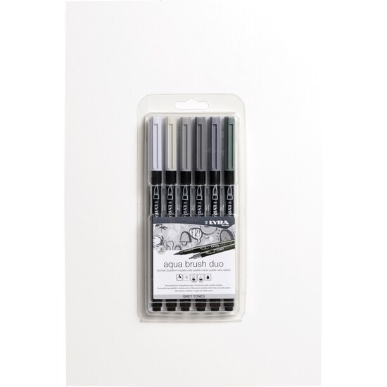 Pack 6 unidades rotuladores doble punta aqua brush duo Lyra tonos grises