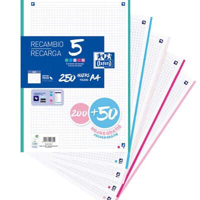 OxfordRecambio 5 paquete con 200+50 hojas cuadrícula 5x5 papel optikpaper con 5 colores banda pastel OxfordAñadir