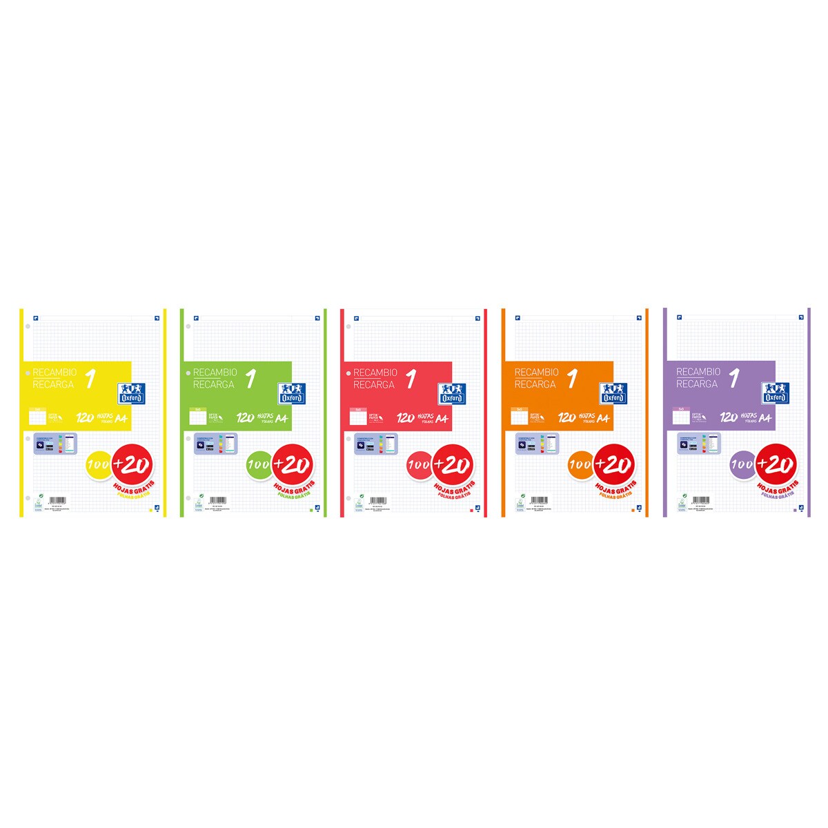 OxfordRecambio 1 paquete con 100+20 hojas cuadrícula 5x5 papel optikpaper con 1 color banda Oxford surtidoAñadir