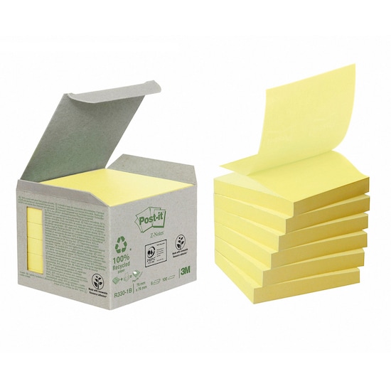Pack de 6 Blocs de Notas Adhesivas Reposicionables Recicladas 76x76mm Post-it Amarillo