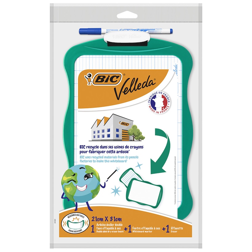Pack de Pizarra Blanca Reciclada Velleda con Marcador y Borrador. Tamaño 21x31cm BIC