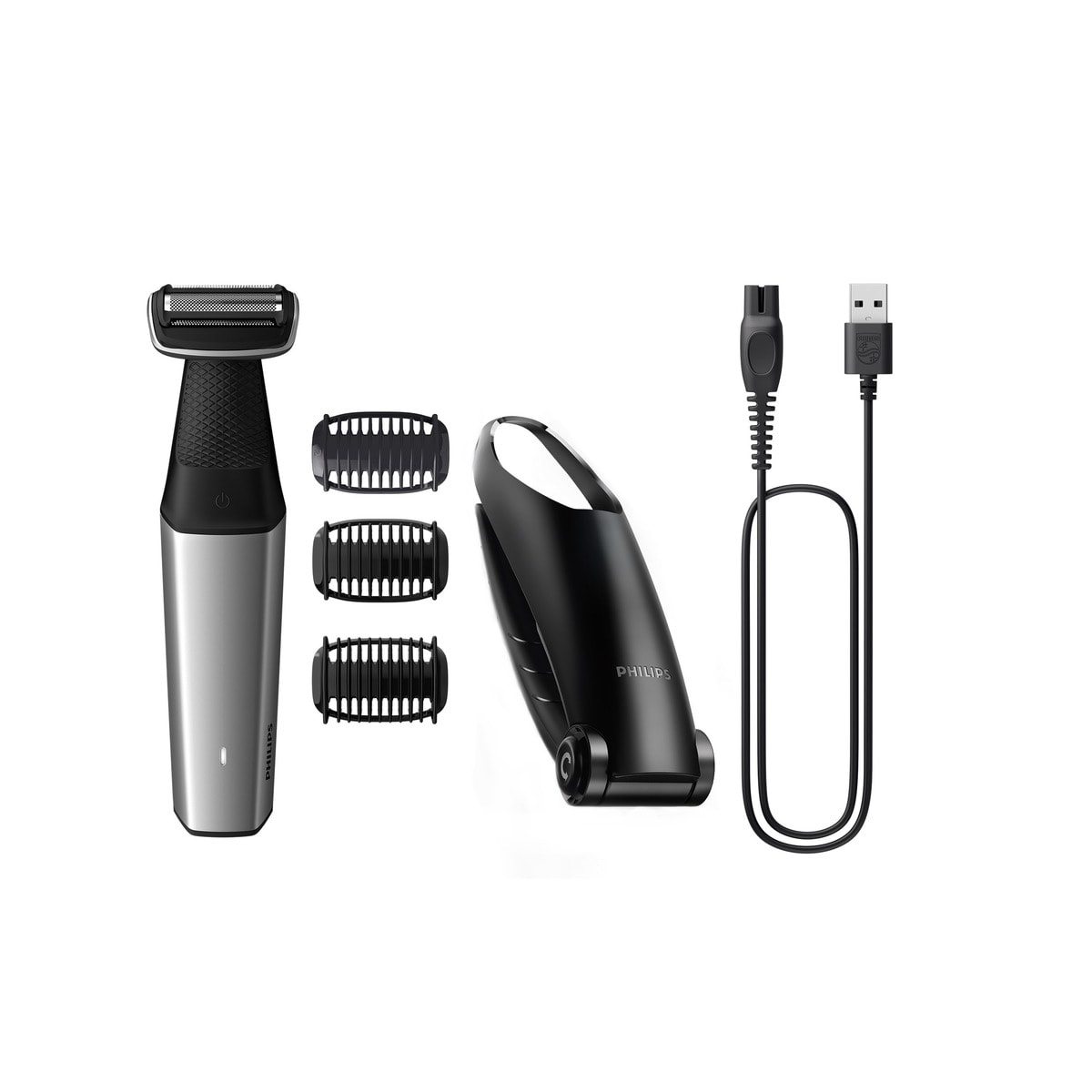 PhilipsAfeitadora corporal Philips Serie 5000, recorta y afeita, con accesorio para la espalda, uso en seco y húmedo, 60 min de autonomíaAñadir