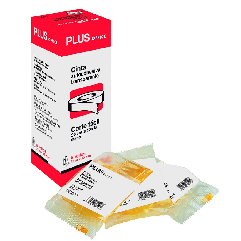 Pack de 8 unidades cinta adhesiva transparente Plus Office 19mm x 33m