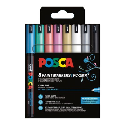 POSCAMaleta Metálica 20 Unidades de Marcadores de Pintura Base al Agua. 3 Trazos Diferentes PC1M, PC3M, PC5M Uni Posca Colores Pop.Añadir