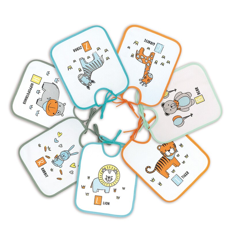 Semanario. Set de 7 baberos estampados