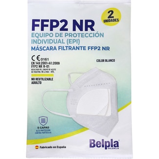 - mascarilla filtrante FFP2 NR color blanco 5 capas BELPLAenvase | 2 unidades0,95 €( 0,95 € / Unidad )