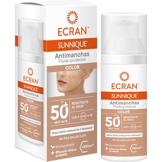 Sunnique fluido protector antimanchas con color vitEox 80 SPF-50+ resistente al agua ECRAN