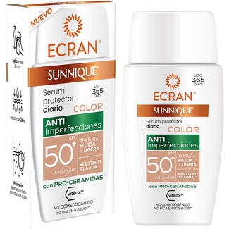 Sunnique sérum protector facial diario con color SPF-50+ resistente al agua textura fluida y ligera ECRAN