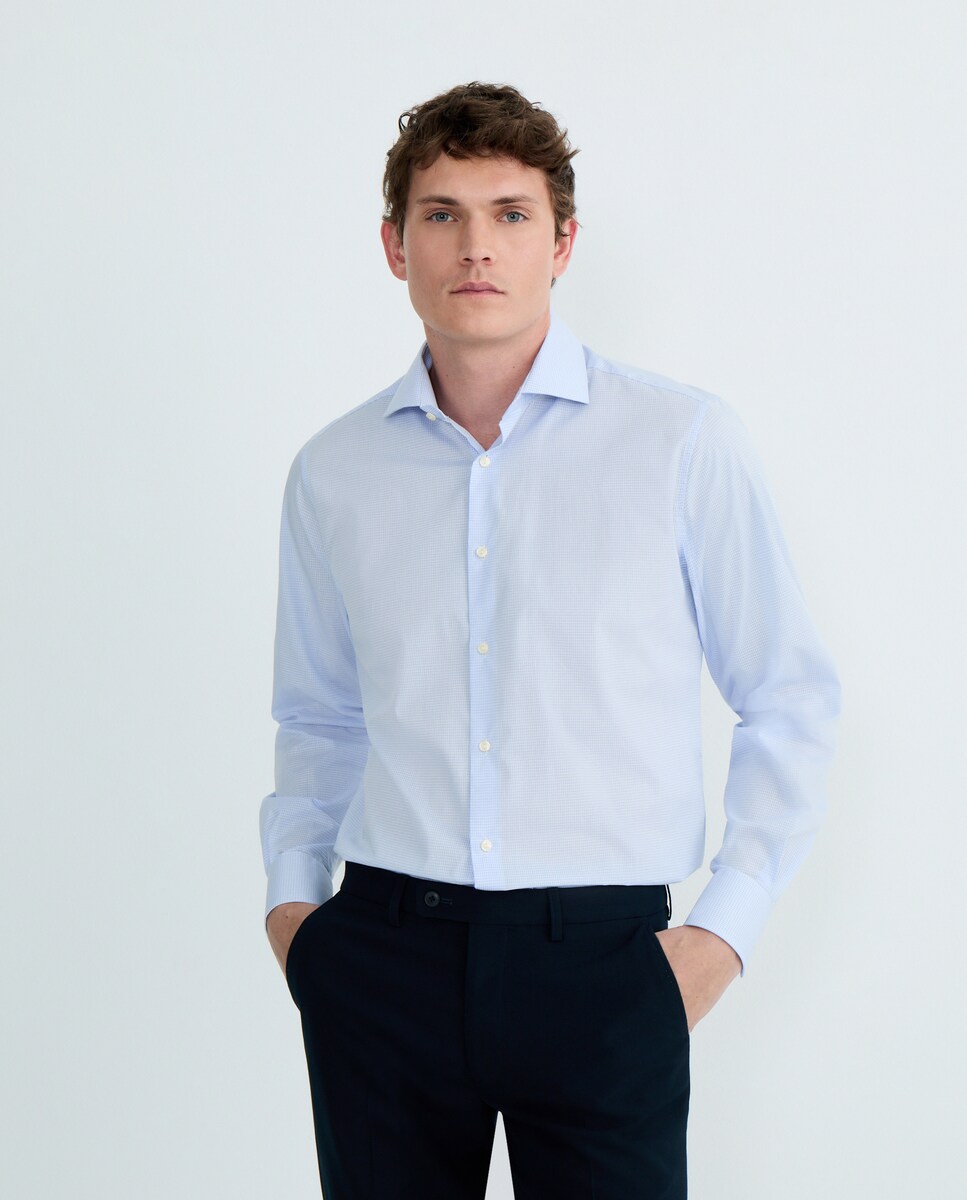 Camisa vestir hombre mini cuadro clásica fit