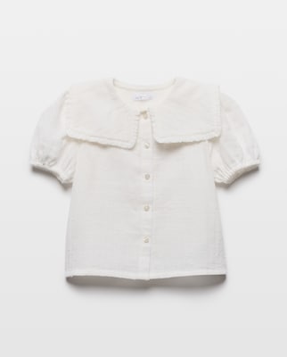 Blusa niña de plumeti con cuello con volante